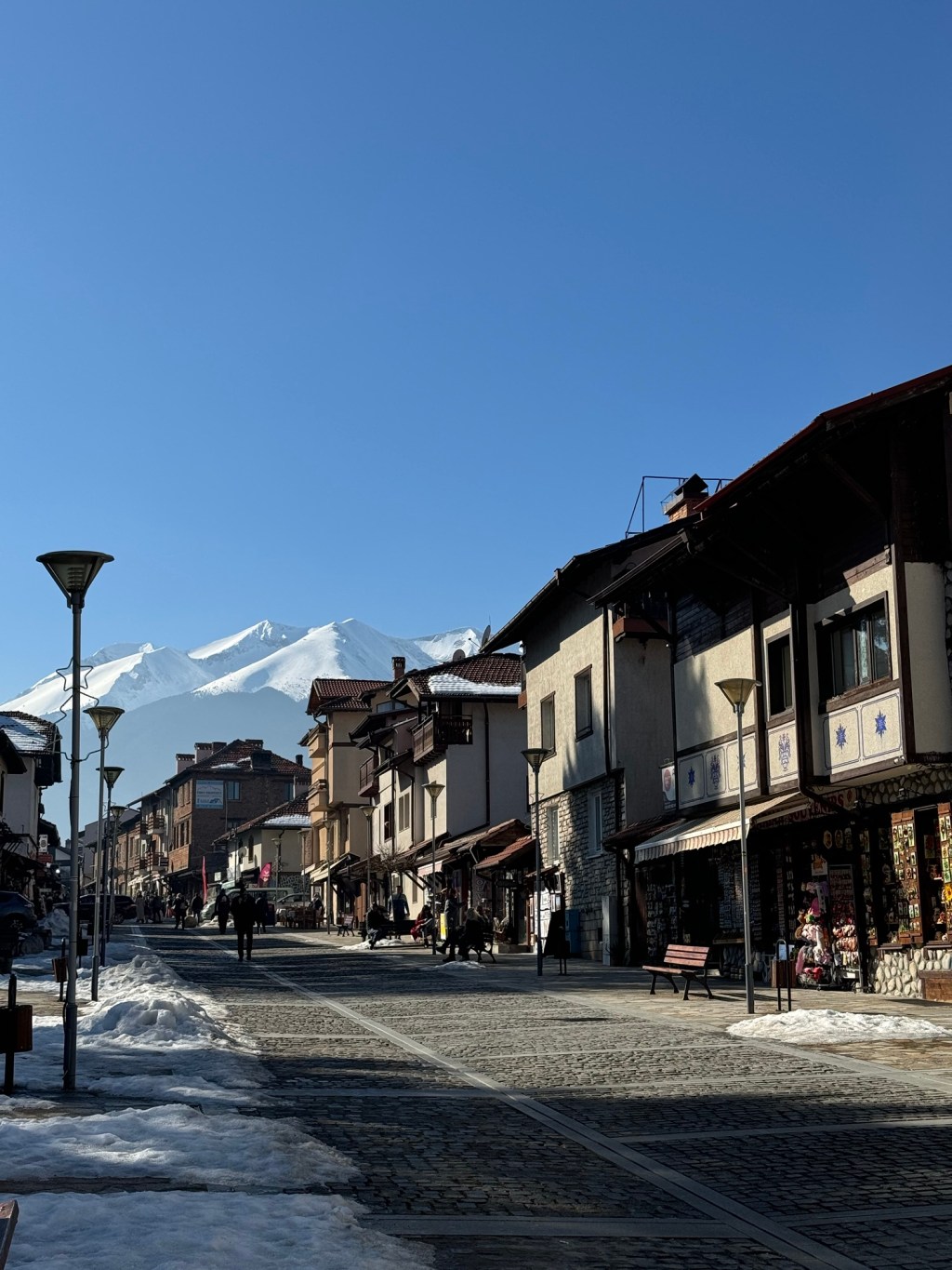 The Old Town is full of cobblestone streets, stone houses with wooden balconies, and little local shops. With the snowy Pirin Mountains in the background, it feels like a postcard.